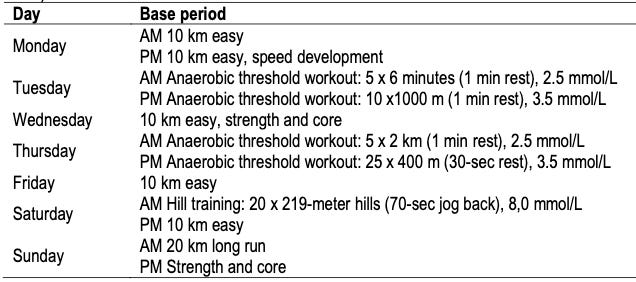 Although these athletes maintain a high volume (120–180 km per week), 75–80% of this volume is done at low intensity (Zone 1), with one weekly high intensity session (above LT2). However, the “Double Threshold” name is derived from an unusual methodology where athletes perform two threshold sessions on the same day, multiple times a week. Unlike training "by feel," this model relies on constant blood lactate monitoring (usually between 2.0 and 4.5 mmol/L) to ensure the athlete stays exactly within the target metabolic window.