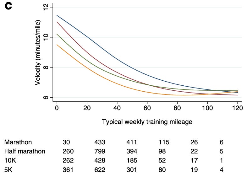 Mileage itself, however, isn’t just a programming choice; it’s constrained by tissue tolerance, recovery capacity, and durability over months and years. In practice, many runners don’t plateau because they lack aerobic stimulus, but because their musculoskeletal system becomes the limiting factor. That’s where I think resistance training really shines.