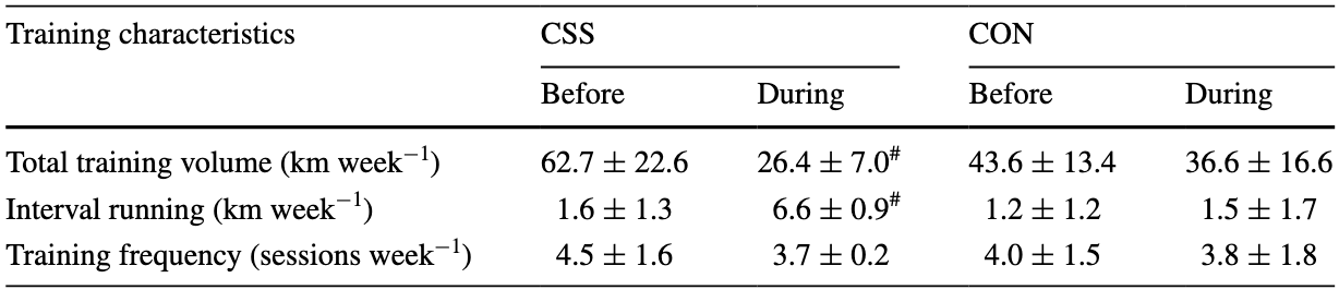 The control group maintained habitual training of approximately 40 km per week, including interval running, though this decreased slightly from around 6 km per week to 4-5 km per week during the intervention period. Performance improvements favoured the intervention group, with a 44% improvement in the Yo-Yo test, a 5.5% improvement in 1,500 m time and a 3.8% improvement in 10 km performance.